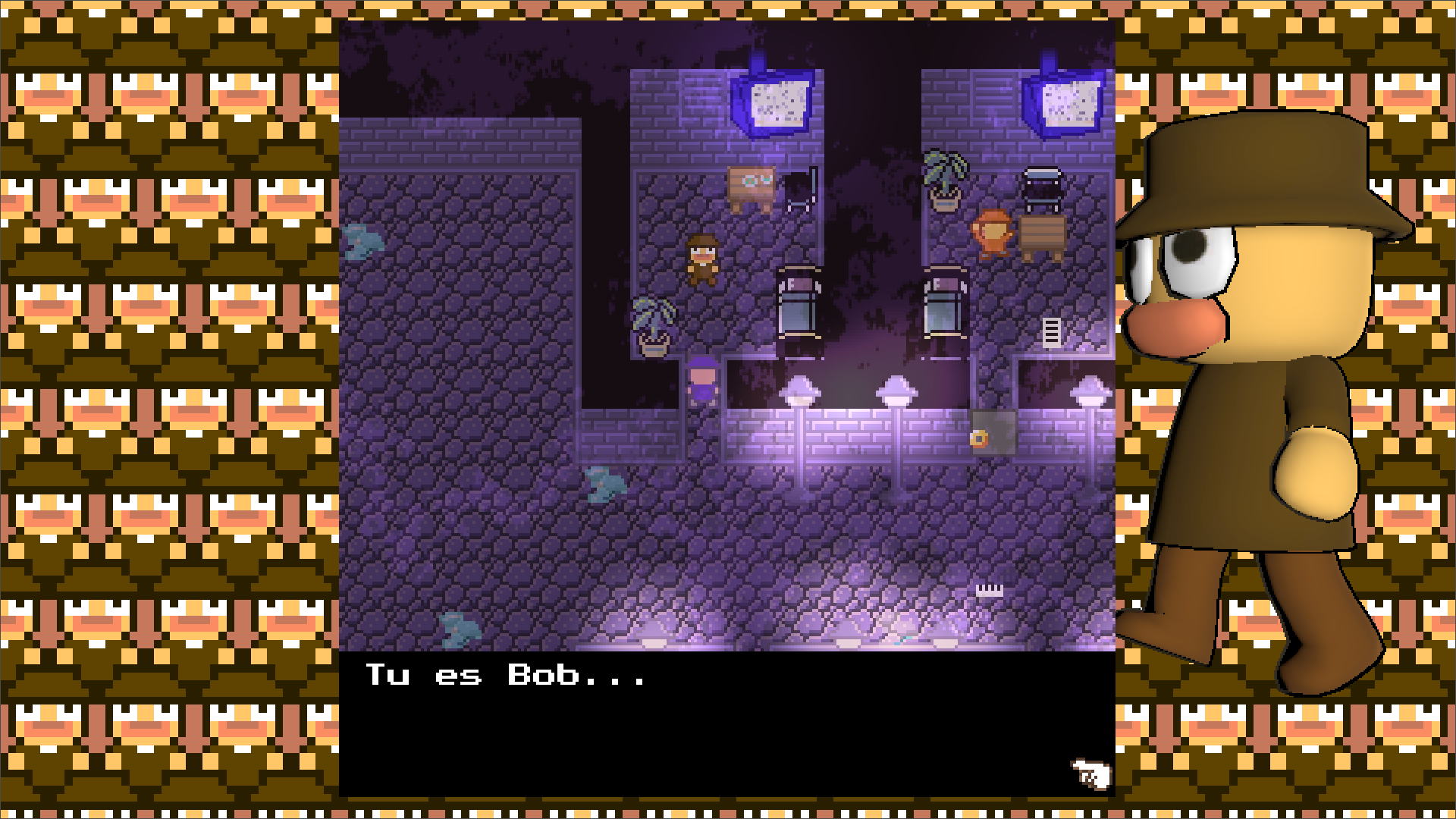 Fr : Dans un monde où tout le monde s'appelle Bob, vous êtes Bob un détective qui a fini en prison pour d'obscures raisons...À vous de résoudre le mystère de ce monde étrange...